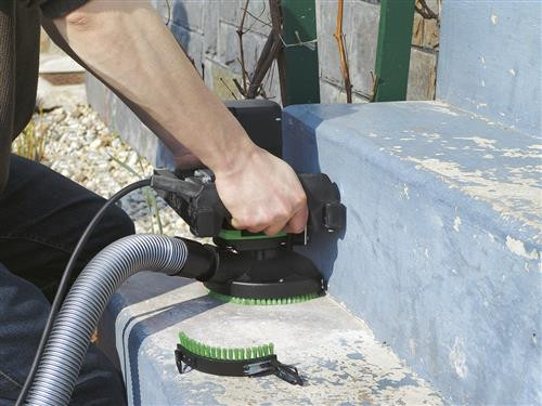 Deze handzame betonslijper is ideaal voor het schuren en egaliseren van oneffen oppervlakken zoals het verwijderen van bekistingsnaden, oude verven en coatings. Maar ook voor de voorbereiding van ondergronden, bijvoorbeeld voor tegelvernieuwing. Beton, estrik, tegellijm, pleister, verf, coatings, tapijtlijm, hout voor elk materiaal is een passende schuurschijf beschikbaar. Zie accessoires voor bijpassende schuurschijven. Inclusief diamantschijf B125 voor beton, verpakt in metalen koffer.