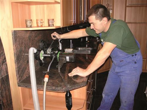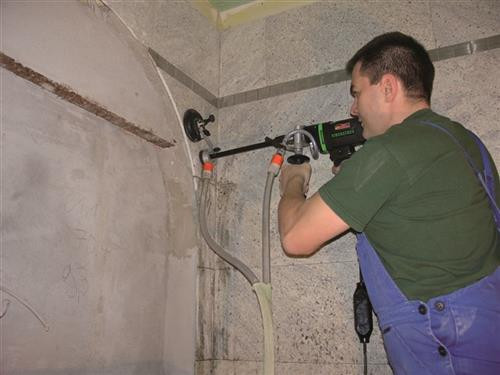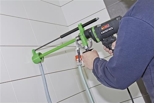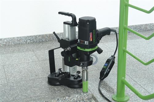 Compacte diamantboormachine voor het watergekoeld boren van gaten tot Ø 68 mm in tegels, keramiek, glas, natuursteen en beton. Verpakt in metalen koffer.