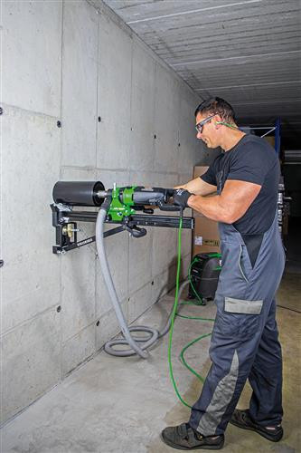 Droogboren tot Ø 162 mm voor zeer harde materialen, b.v. sterk samengeperst kalksteen, gewapend beton en andere abrasieve materialen met een hoge werksnelheid. Het maken van muur- en dak openingen voor sanitair, verwarming en ventilatie-installaties. Voor elektrisch installatiewerk (dozen uitfrezen, schakelaars en contactdozen). Met speciaal ontwikkelde boorkronen kan zelfs in gewapend beton geboord worden.