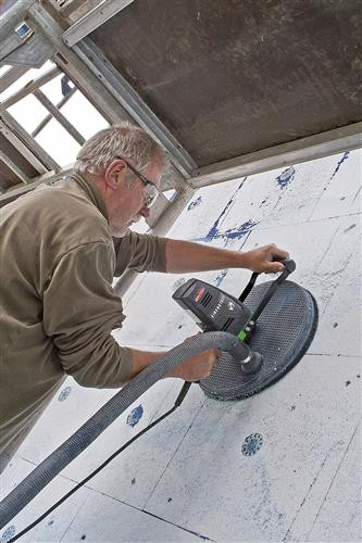 Schuurmachine voor het schuren van opgeschuimd polystyreen en minerale isolatieplaten voor warmte-isolatie. Inclusief 1 vel schuurpapier korrel 24.